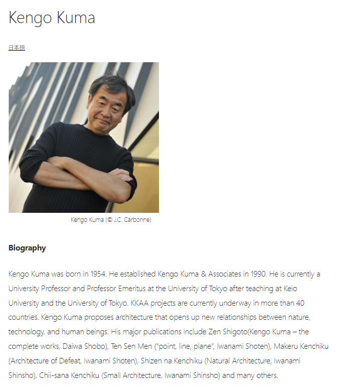Kengo Kuma 隈研吾是一位以像素化工艺著称的建筑师。他的创作涵盖各种规模,并遍布四大洲,始终秉持对建筑材料严谨的重视和元素的准确度,这些元素被精心组装成像织锦一样编织的立面。从东京的巨大新国立竞技场到最小和最短暂的展馆,设计过程将建筑划分为组件,以精湛的形式纪律塑造它们,并在几何和建筑的指导下将它们组合在一起。一块一块,工艺的触感在元素的重复和有节奏的音乐中被稀释,物质的坚实在表面的像素化中变得模糊。