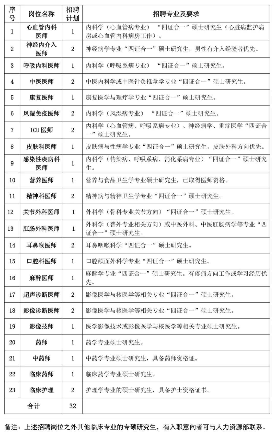 根据医院发展及学科建设需要,现面向社会公开招聘工作人员37名,具体事项公告如下: