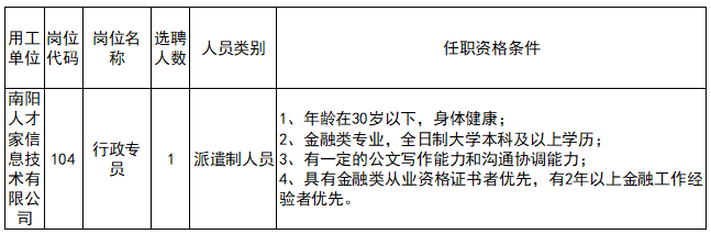 >南阳人才家信息技术有限公司公开招聘派遣制工作人员公告