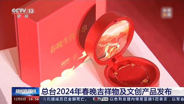那就不得不提前不久举行的2024年总台龙年春晚吉祥物暨总台文创新品发布仪式上,总台主持人郭若天手上戴的红色手串。