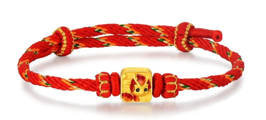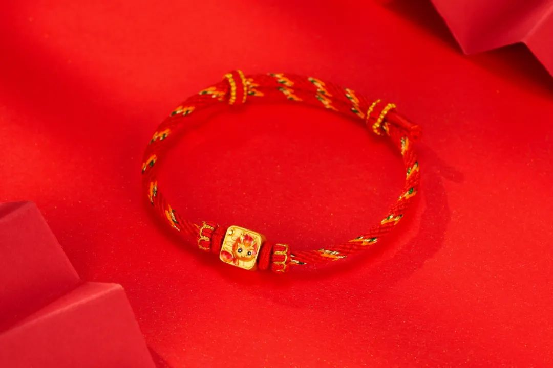 它活泼灵动,充满朝气,呈现出吉祥如意、平安幸福的美好寓意,足足抓住了国人的胃口和眼球。手串采用足金999打造,克重≥0.5克,采用硬金与低温珐琅彩工艺相结合。
