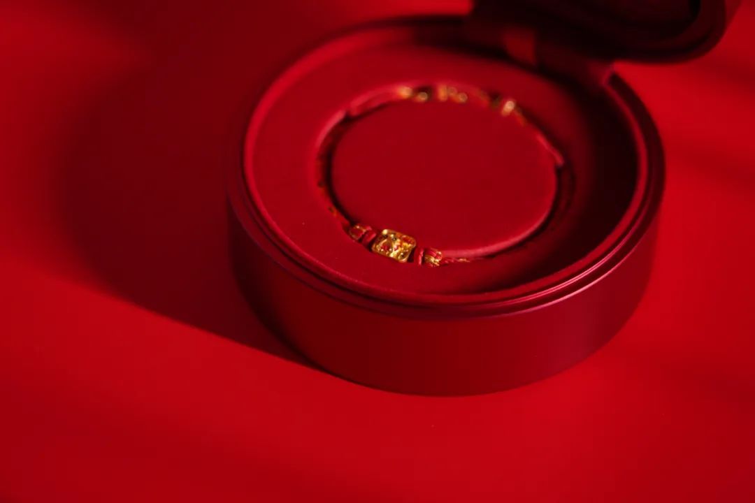 当你轻转盒盖时,会依次出现八个祝福语;当旋转到“吉时已到”时, 灯光同步亮起,寓意美好正式开始。