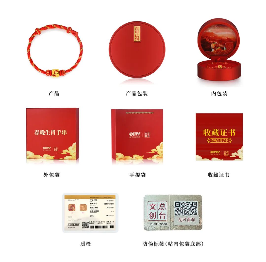 因此,总台文创重磅推出贺岁金器——《春晚生肖手串》,开启新年鸿运,喜迎“金色里程”!