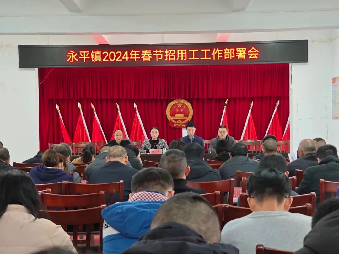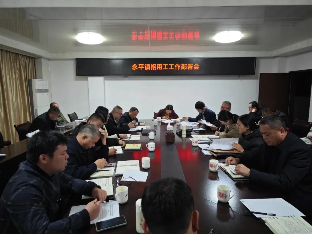 2024年1月15日永平镇召开领导班子招用工工作部署会,会议上布置服务企业招工稳工工作,对企业用工服务工作具体部署,明确目标任务,落实工作举措。2024年2月4日召开全镇干部2024春节招用工工作部署会,会议上再次强调要有效解决企业用工难题和群众就业难题;要多形式、全方位做好宣传发动工作;要积极动员外出务工人员返乡创业,就近就业。
