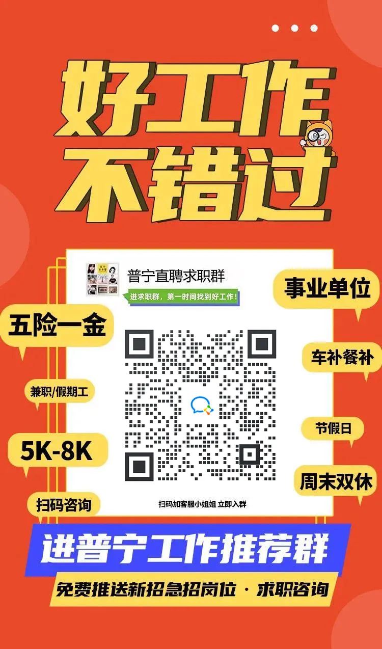 要求:有工作经验优先,认真有责任心 薪资待遇:月收入5000/月 福利待遇:包吃夜宵 感兴趣者可与我联系,请备注是在普宁直聘上看到的,谢谢!