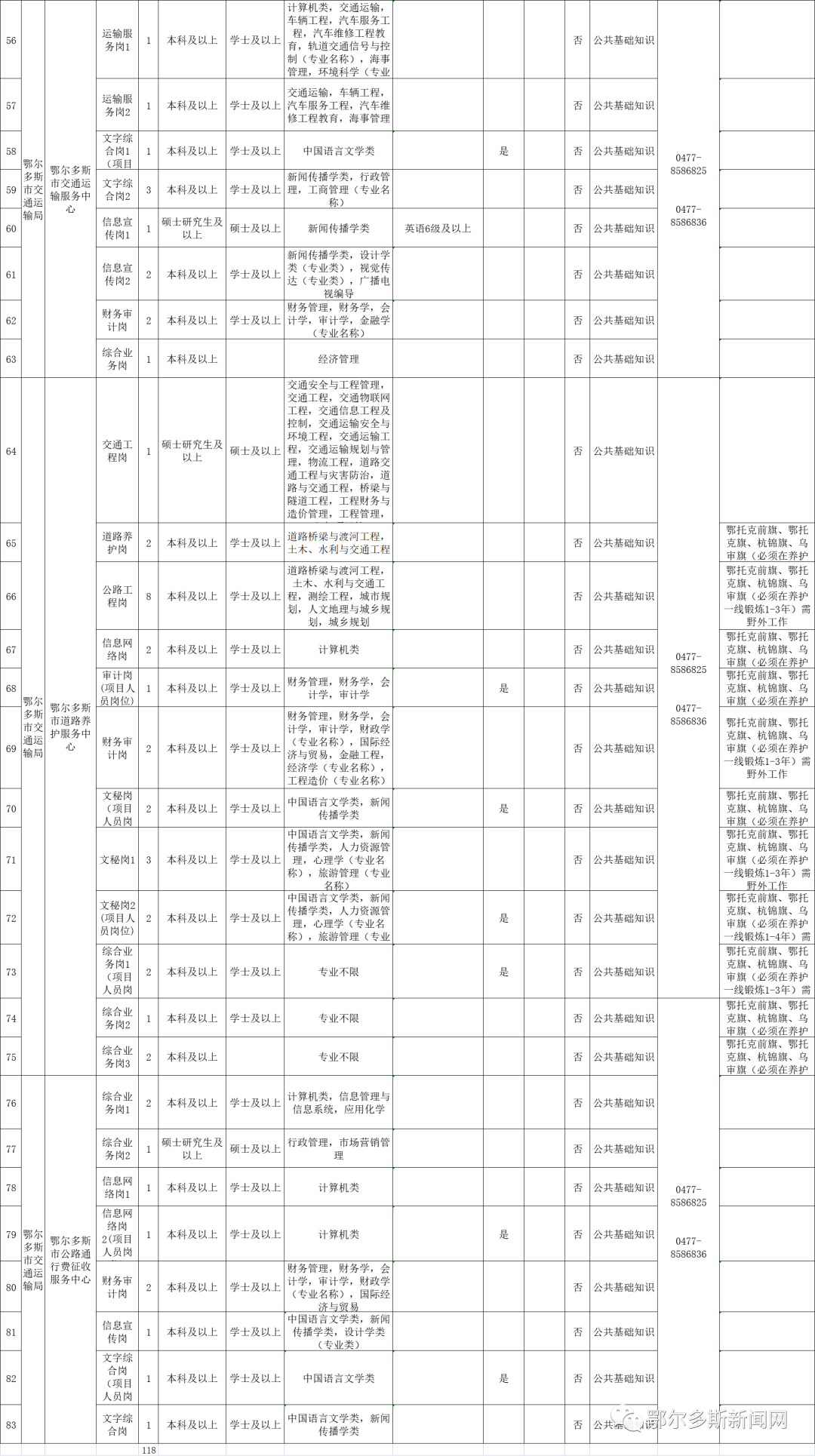 鄂尔多斯市市直事业单位公开招聘118名在编工作人员。
