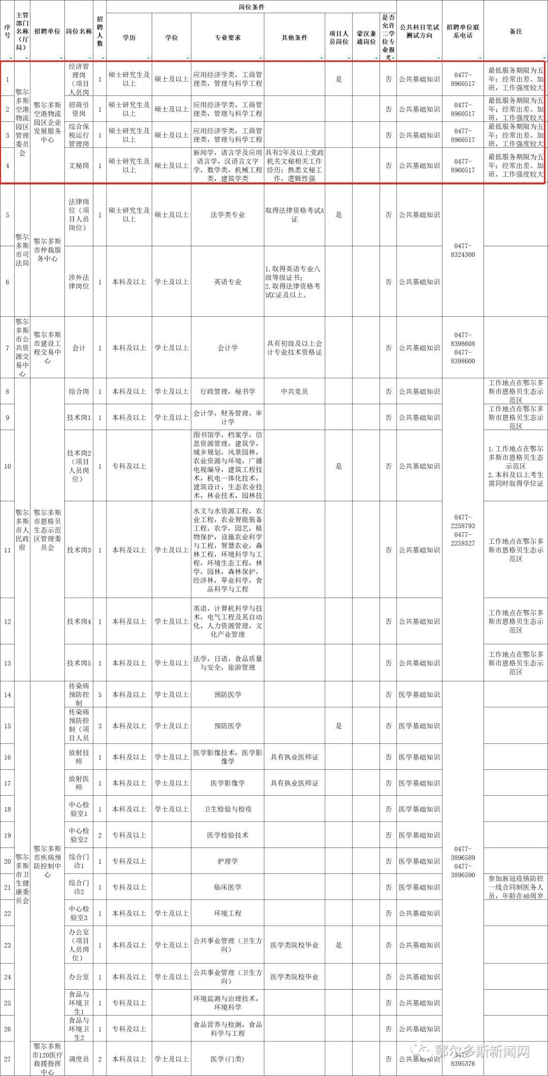 (五) 受新冠肺炎疫情影响,本次招聘考试的有关程序、步骤、要求等可能因疫情防控工作需要作出调整,届时将在鄂尔多斯市人力资源和社会保障局官网上发布相关公告,请应聘人员随时关注。请应聘人员在考试前做好个人防护,减少非必要流动。