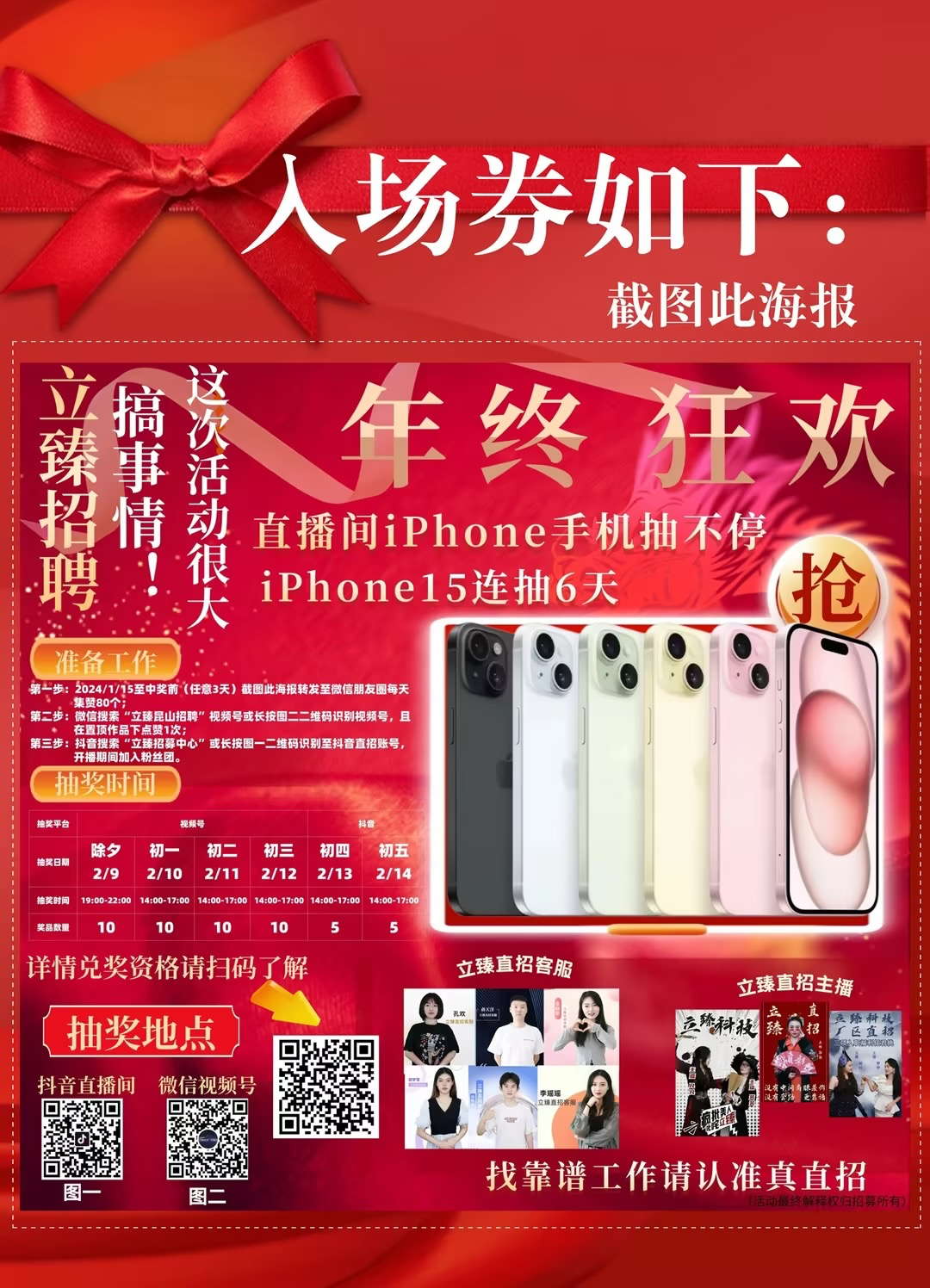 >【立臻招聘】本周五开奖!!iPhone 15 抽不停!!你做好准备了吗?