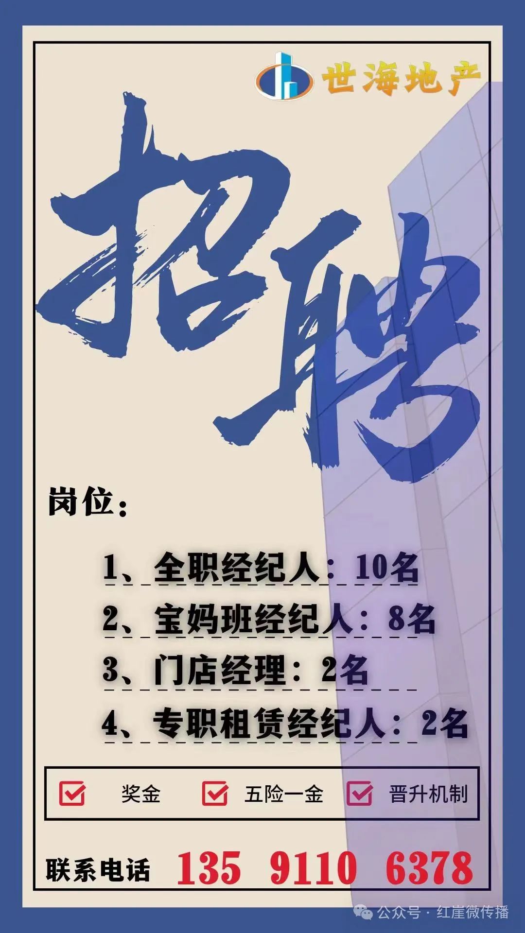 二.为了方便宝妈经纪人方便接孩子上下学,招合伙经纪人8名。每天工作5个半小时,每周休2天。工作内容:房屋销售,租赁。业绩40%通提+补助,可缴保险,年收入10万。在这里工作每月在这里赚的更多。