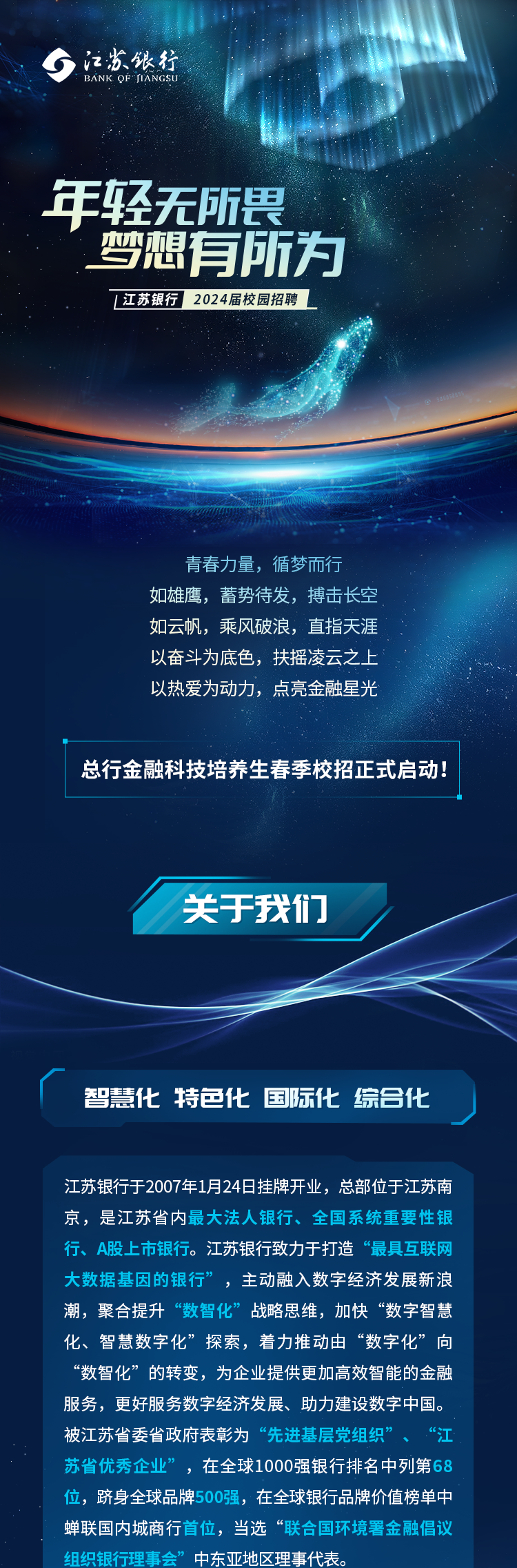 >招聘 | 江苏银行2024届总行金融科技培养生春季校招正式启动