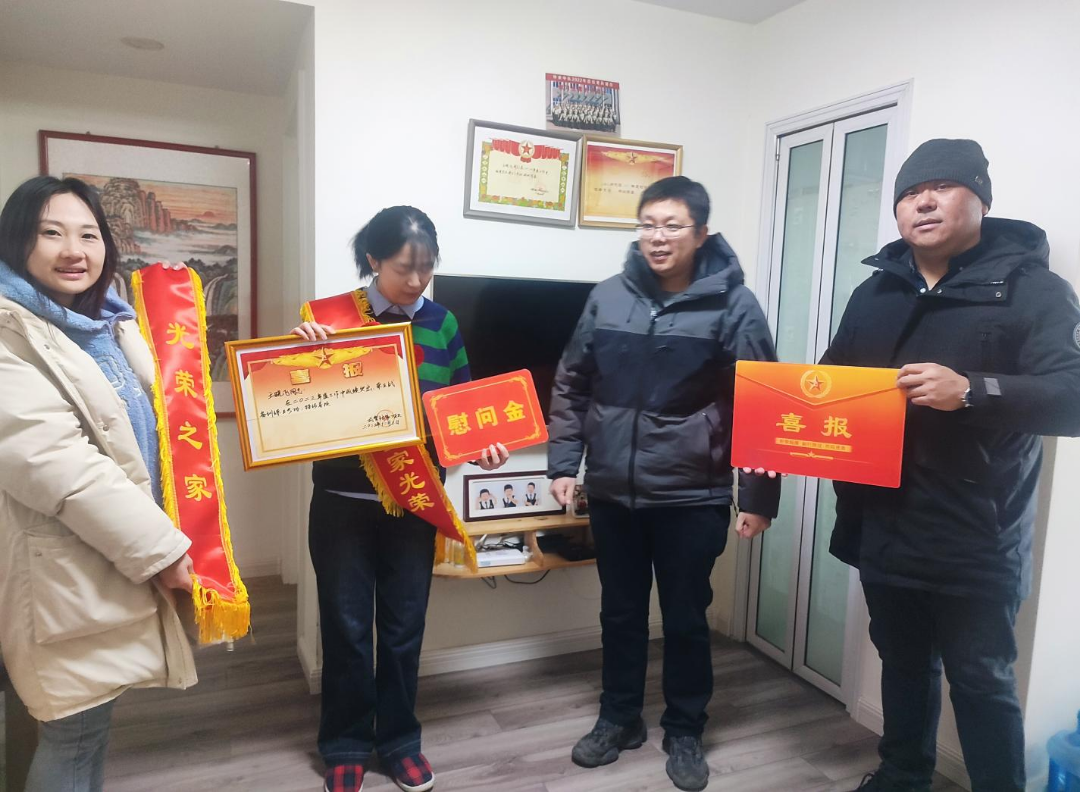 万兴街退役军人服务站为辖区内荣立三等功的现役军人家属送喜报。为立功受奖现役军人家属送喜报,真正把“一人参军,全家光荣”落到实处,营造了“尊崇军人、敬重英雄、关心国防、热爱部队”的浓厚氛围,让军人和家属感受党和政府的温暖和关怀,提升了军人及家属的获得感、荣誉感和自豪感,同时也激发了现役军人的使命感和责任感,激励着他们在部队建功立业、献身国防。