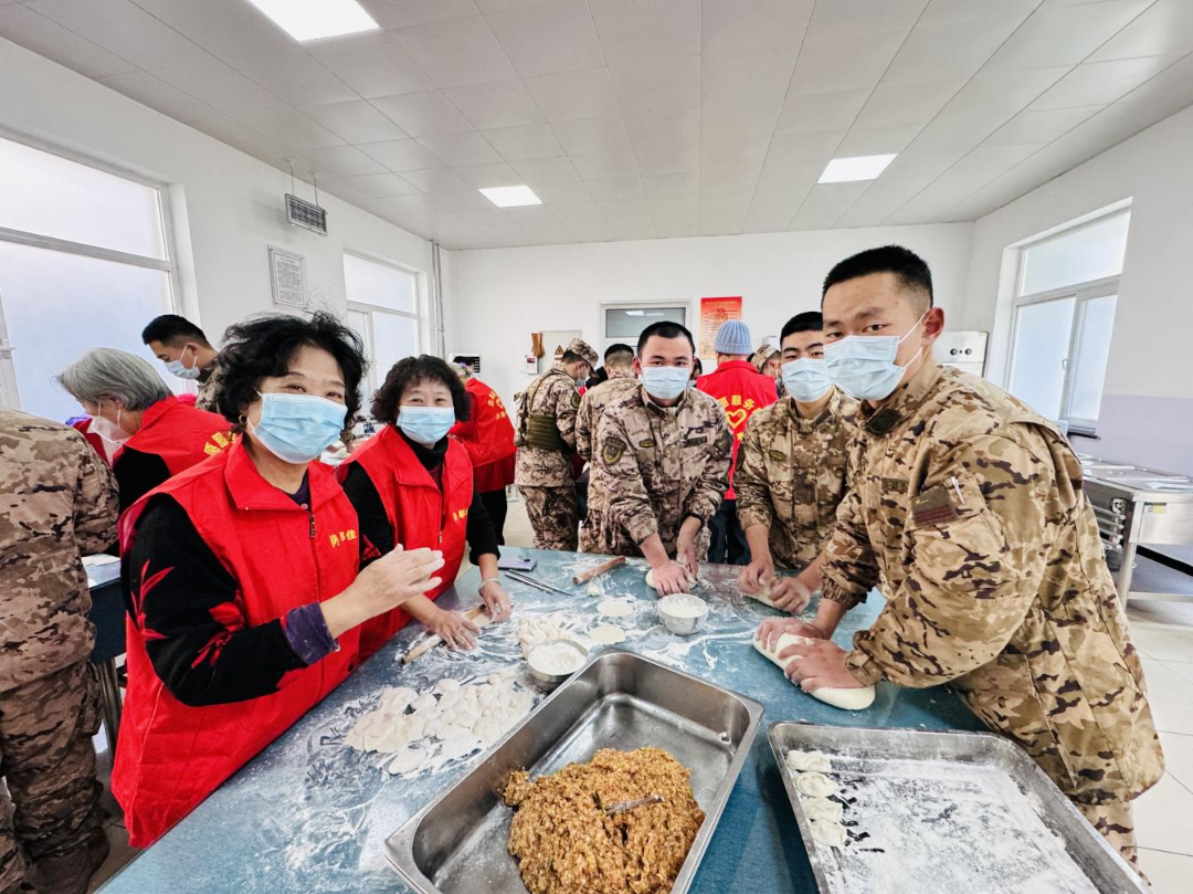 水上公园街欣苑公寓退役军人服务站组织了一场特别的包饺子活动,为武警天津总队某中队的官兵们送去了温暖和祝福。活动中,志愿者和部队官兵们欢聚一堂,一起动手包饺子。他们边拉家常边分工协作,你揉面、我和面,你擀皮、我包馅,官兵们热情地向志愿者们介绍自己的家乡以及在部队的学习、生活、训练等情况,大家畅所欲言,现场笑语不断,其乐融融。一盘盘秀色可餐的饺子,整齐地排列在大家的面前,空气中弥漫着浓浓的“家”的味道,洋溢着满满的温馨与喜悦。