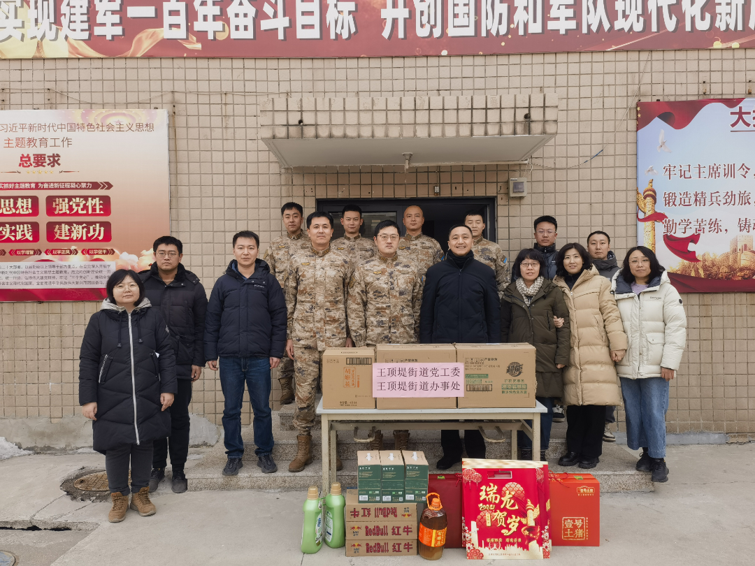 王顶堤街街道办事处主任、武装部武部长、街退役军人服务站分管领导和工作人员、金厦里社区退役军人服务站站长和工作人员一起为部队送去《慰问信》、福字对联和慰问品,并与驻区部队签署了2024年军地军民共建协议。