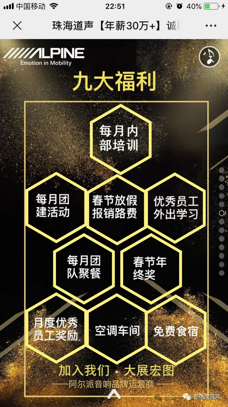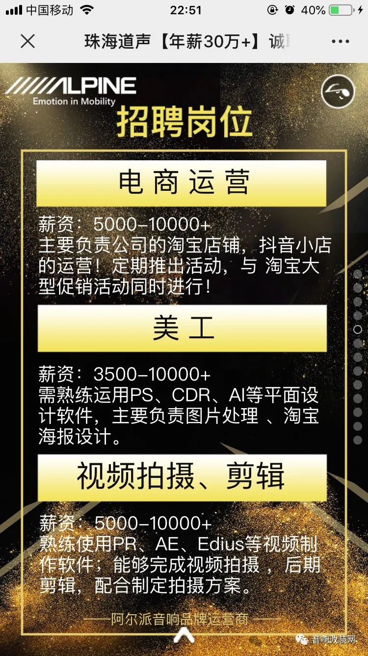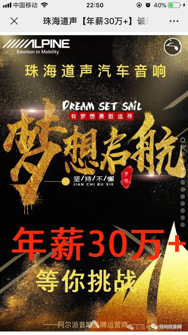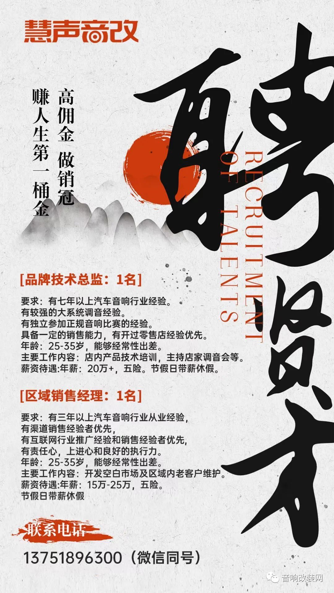 【三】珠海道声【年薪30万+】诚聘汽车音响相关从业人员,咨询18666105959李先生,详情见