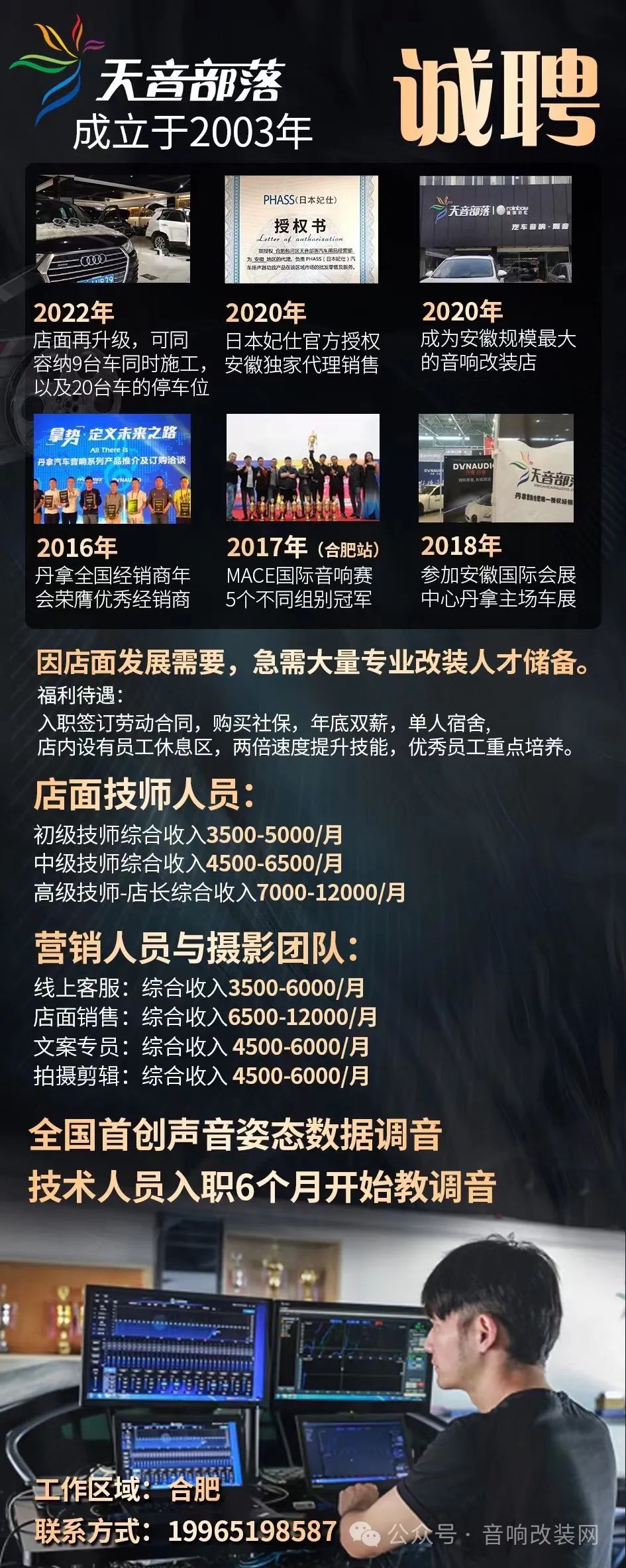 【四】合肥天音部落汽车音响招聘店面技师人员:
