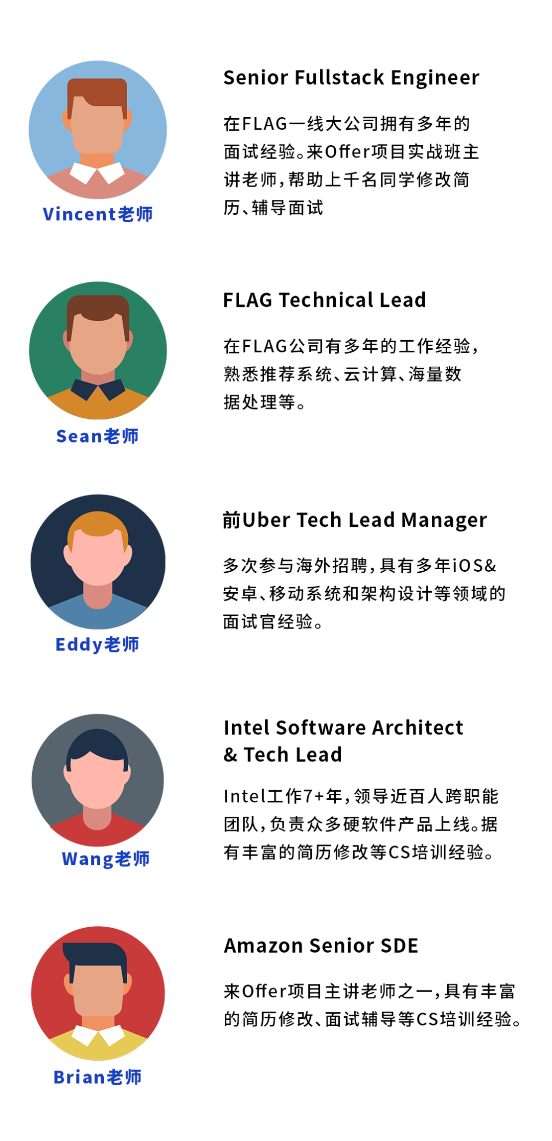 无论是Full stack Engineer,Web Developer,Mobile Developer, Frontend Engineer, Data Engineer等职位,全栈开发实战班都能帮助简历薄弱的同学们突破面试拿到Offer。