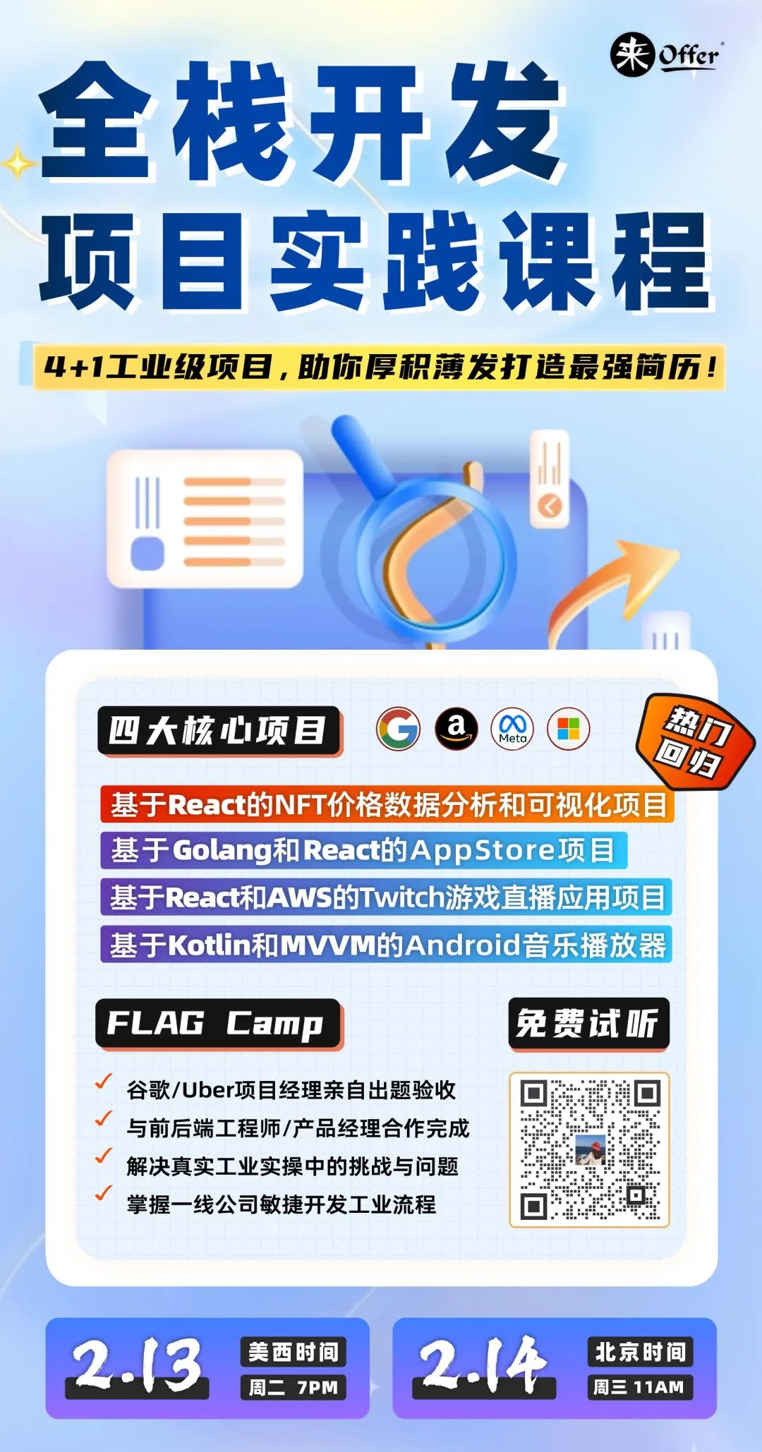 从算法、项目、System Design、BQ等多维度帮你逐一攻破,自信面对面试!