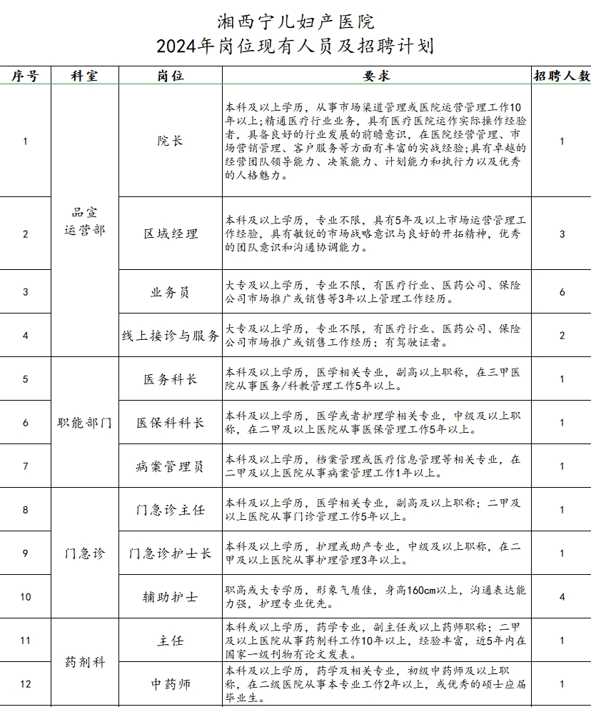 诚聘英才 | 2024年湘西宁儿妇产医院优质岗位火热招聘中!