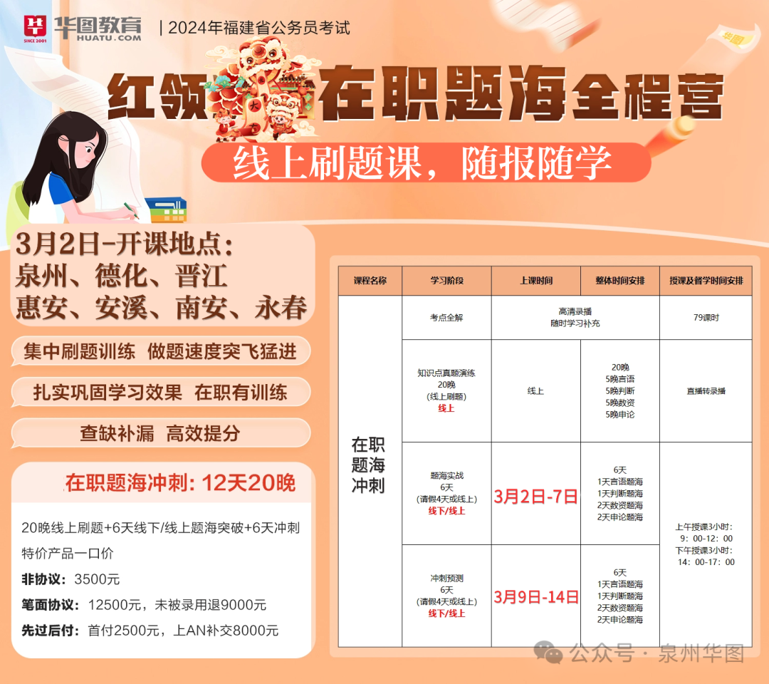 泉州华图:0595-22025188,丰泽区泉秀路领SHOW天地东区创意办公D栋3层