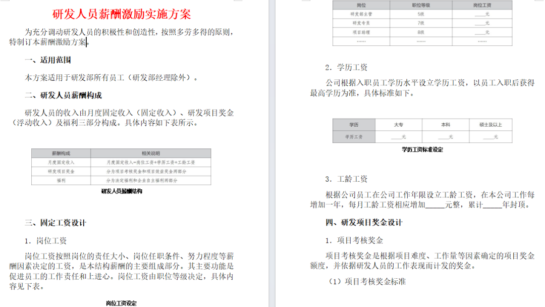 本套资料包含薪酬激励方案(完整版)、薪酬规划表,预览如下: