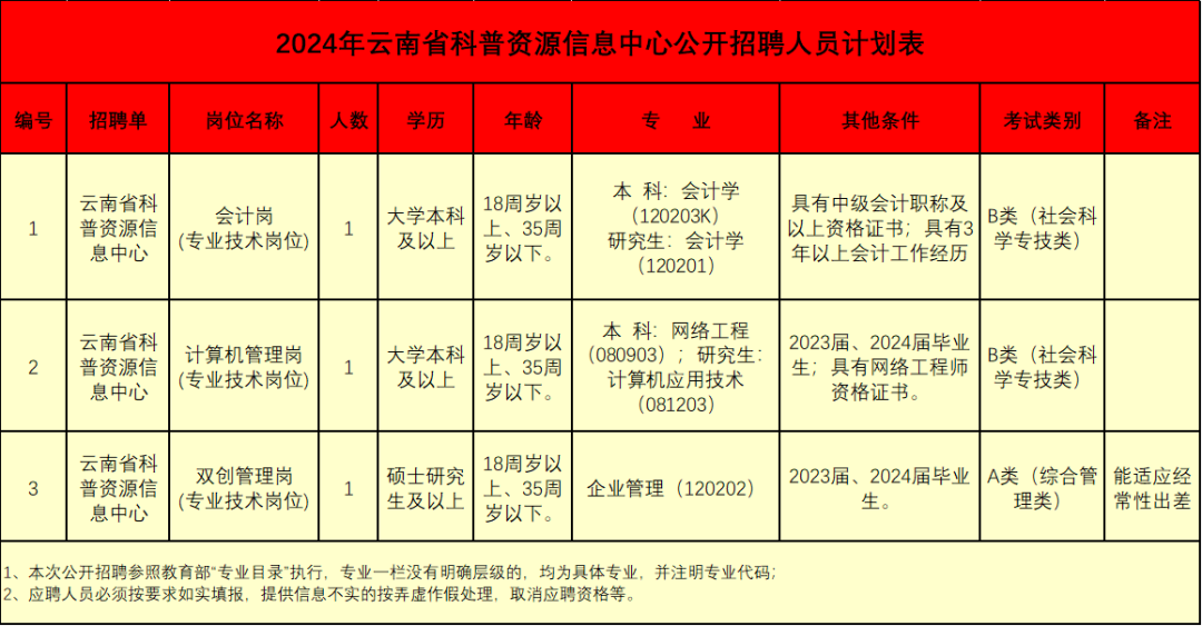 1.2024年云南省科普资源信息中心公开招聘人员计划表