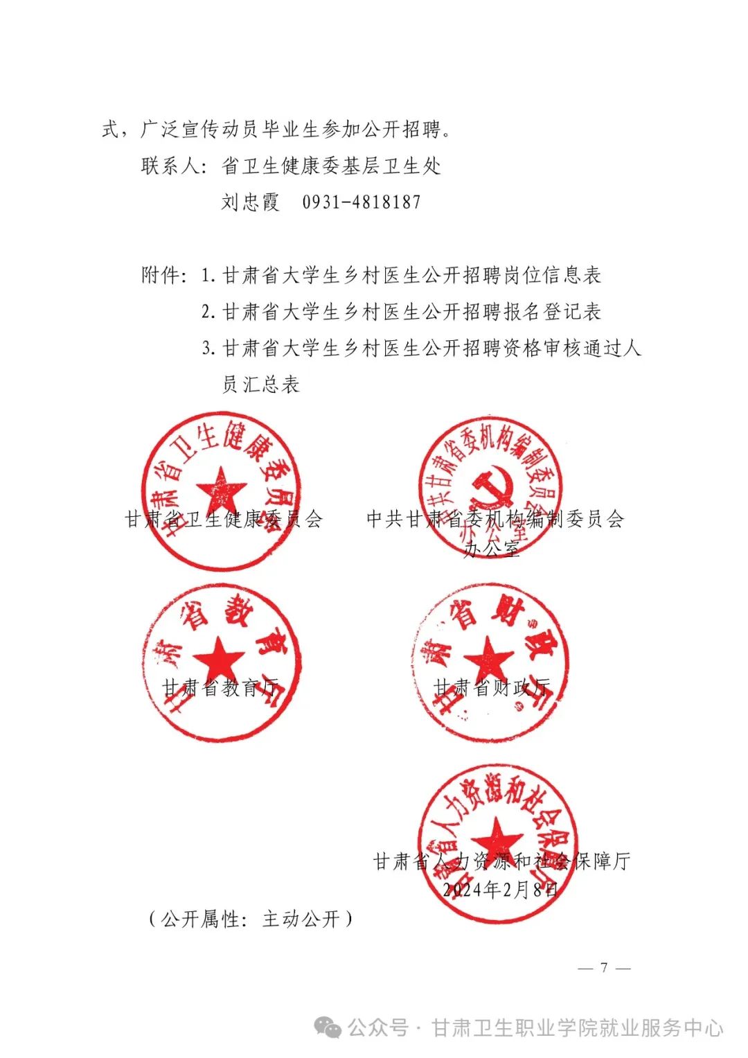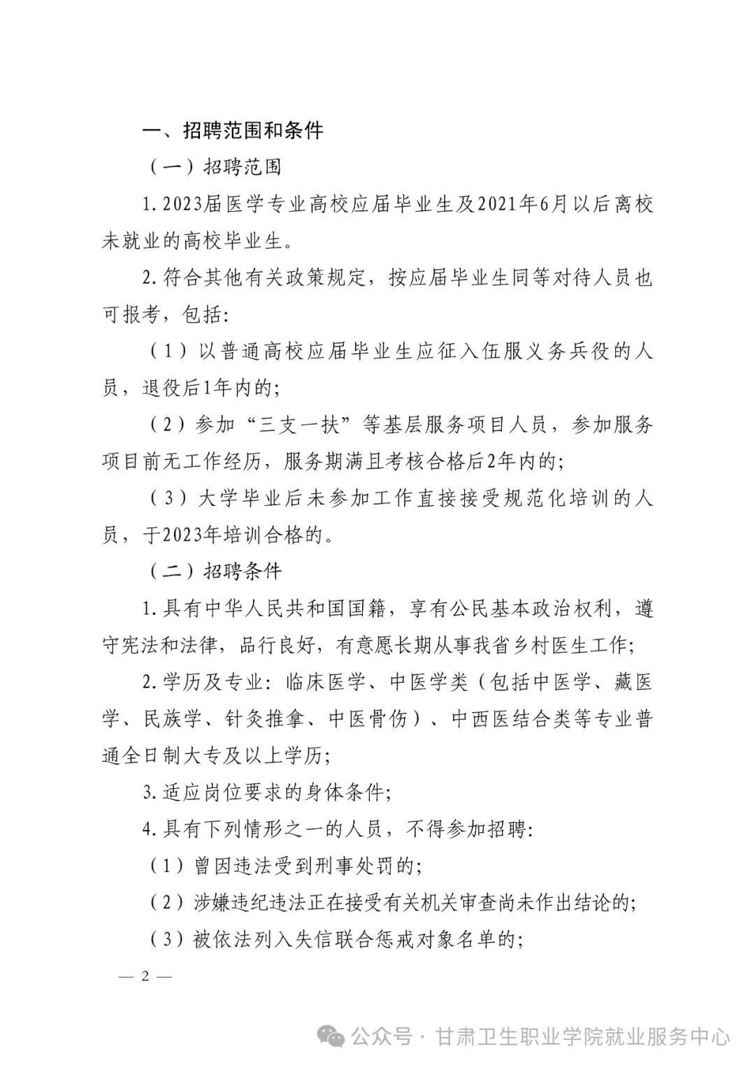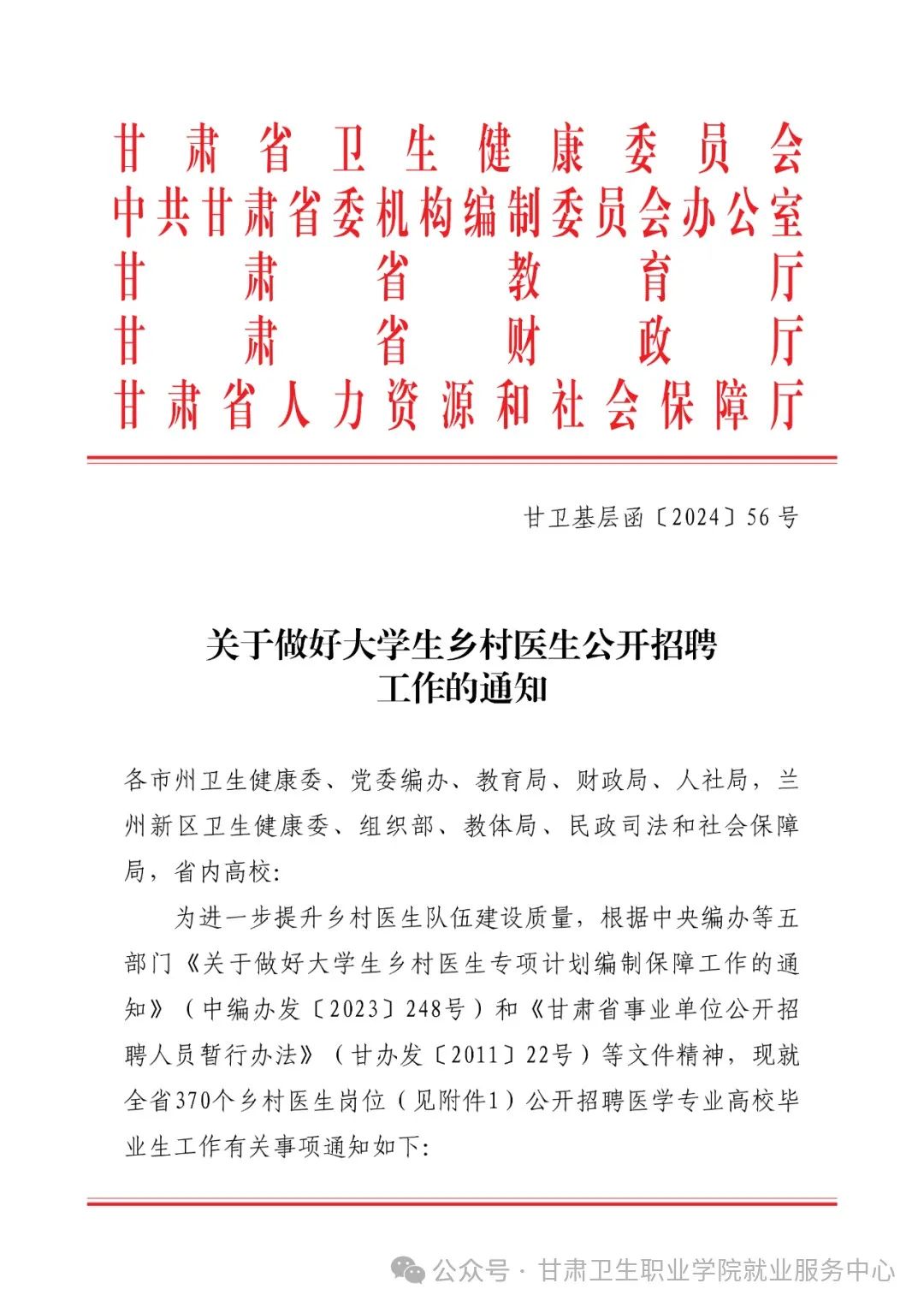 >2024年甘肃省招聘大学生乡村医生370人公告