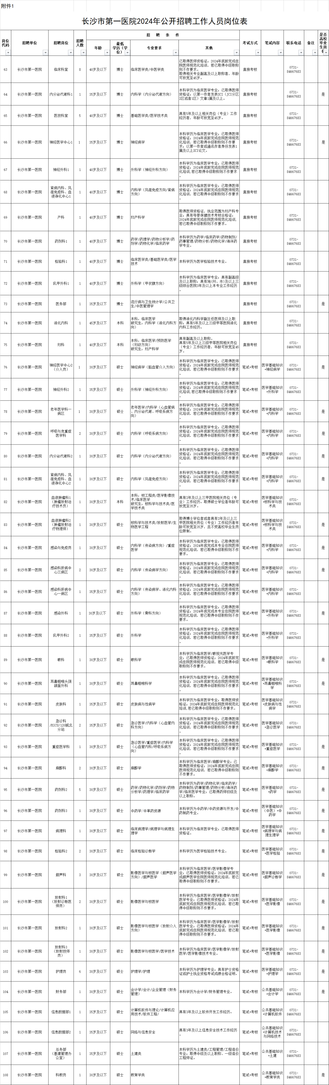 >长沙市第一医院,2024年公开招聘工作人员简章