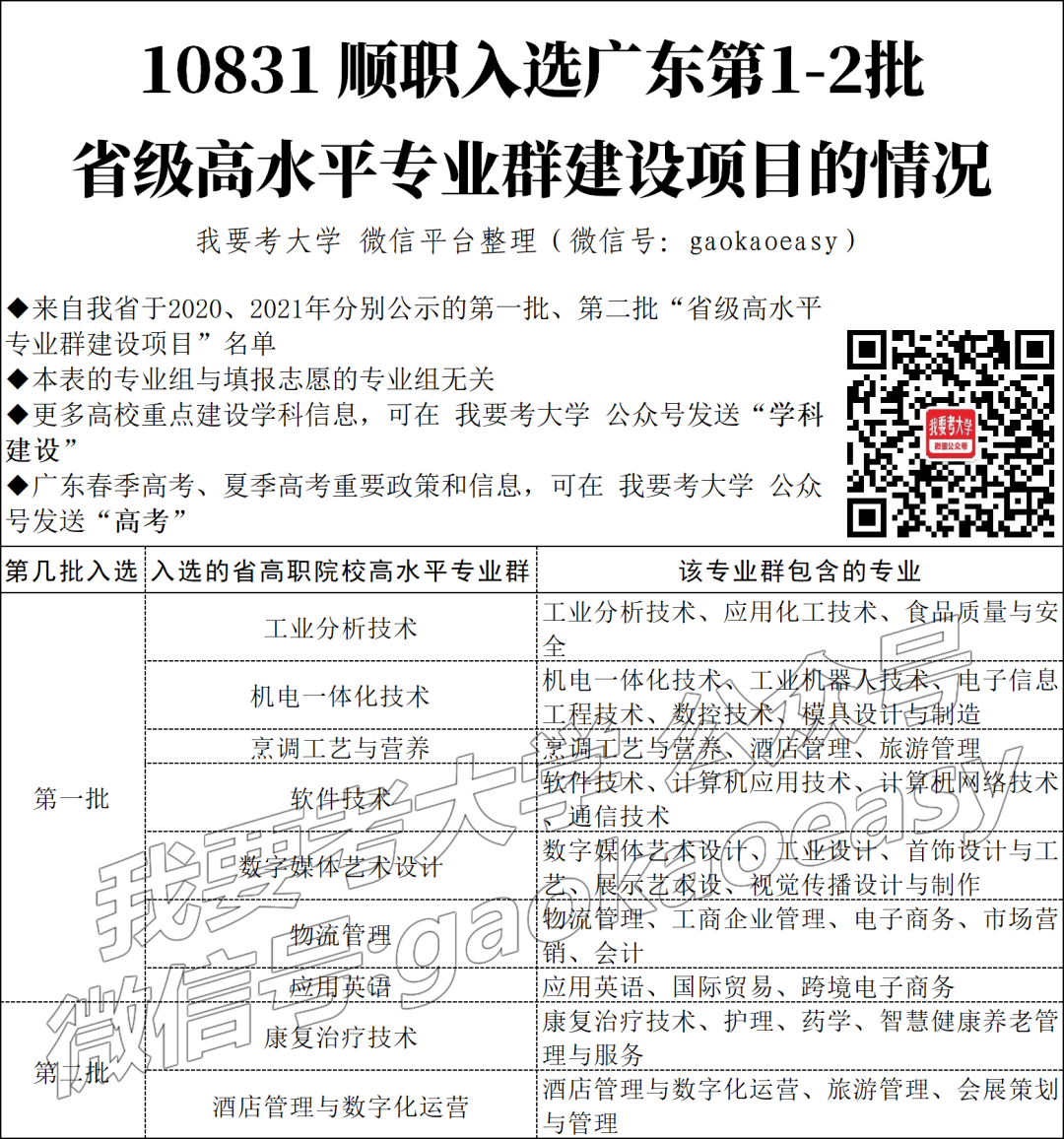了解广东省春季高考、夏季高考等各项政策、信息,可在我要考大学公众号发送消息“高考”查看。加入交流群,可发送“群”。