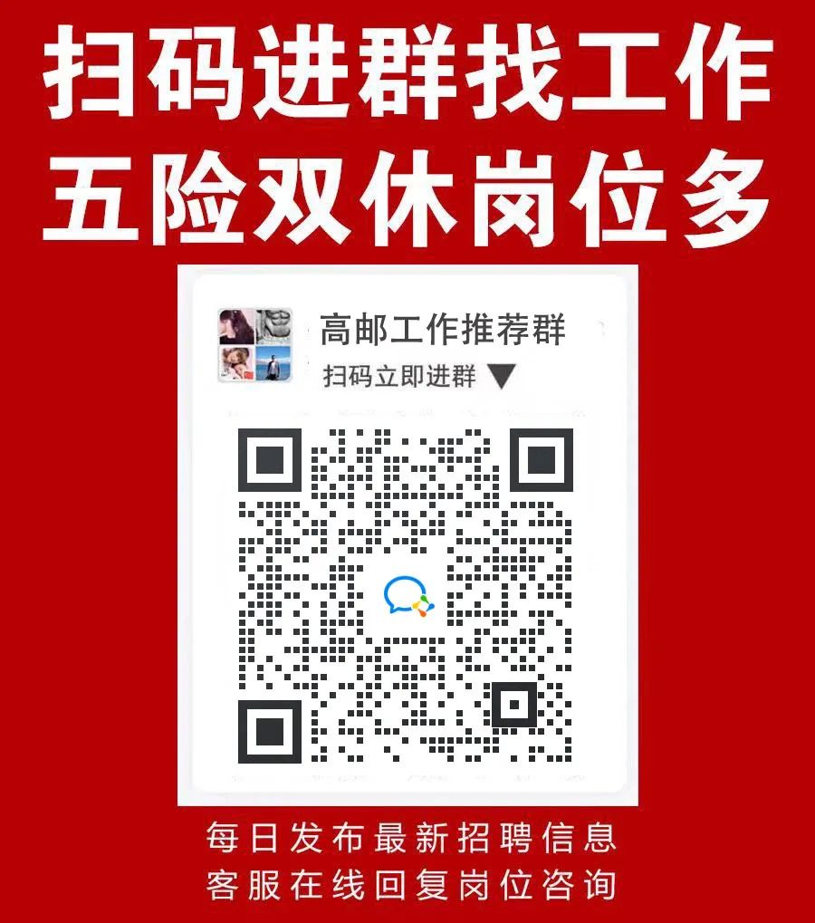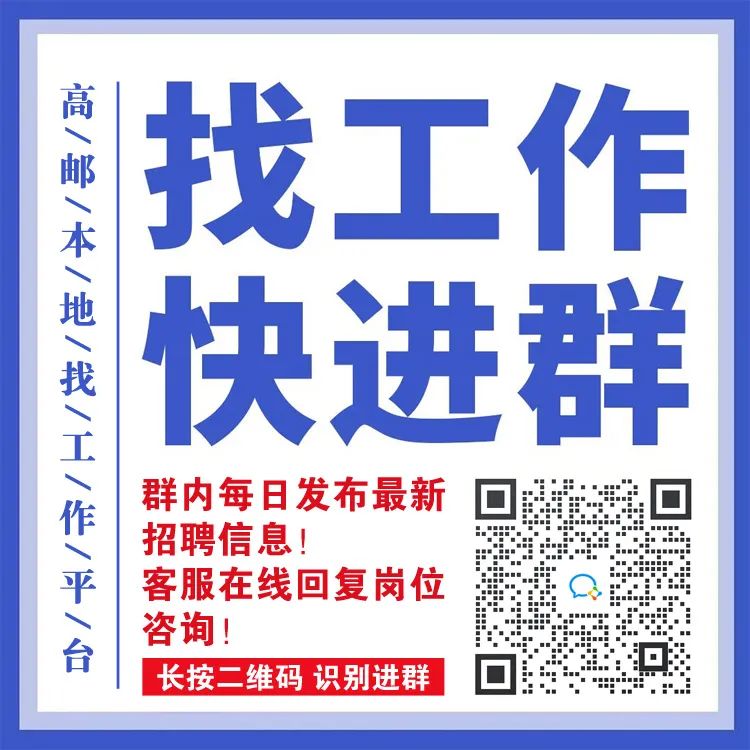 关注高邮直聘公众号,后台回复岗位关键词【文员、销售、会计】等,会智能给大家推荐岗位哦!