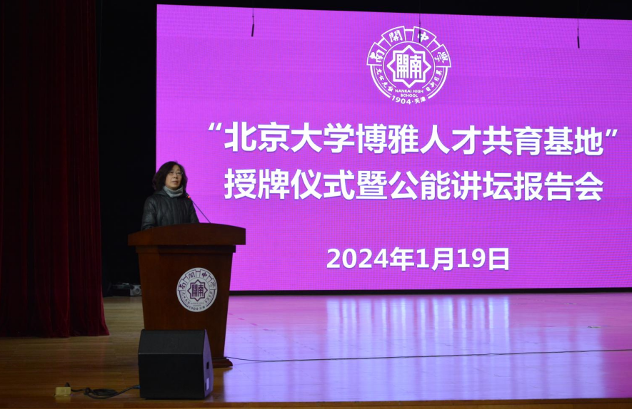 近日,北京大学“博雅人才共育基地”授牌仪式暨南开滨海公能讲坛首场报告会在天津市南开中学滨海生态城学校瑞廷礼堂隆重举行。