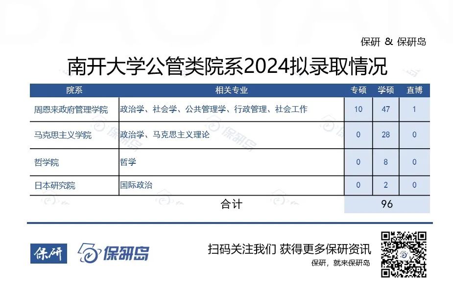 南开大学公管类院系、2024年拟录取招收的专业、对应拟录取人数如下表: