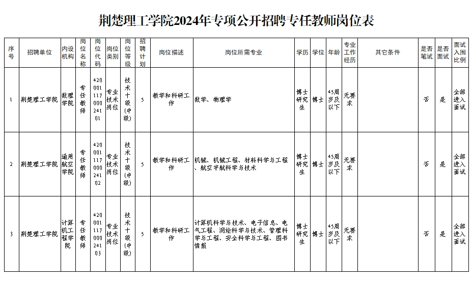 人,具体岗位、专业要求及联系方式详情见《荆楚理工学院