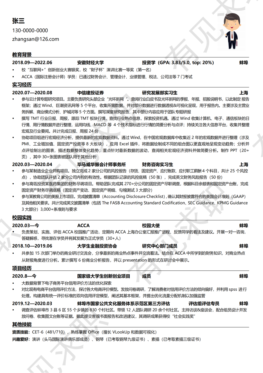☛ 央国企通用简历模板