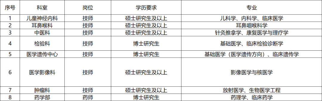 5.紧缺专业医技岗位,条件优秀者可适当放宽资格条件。