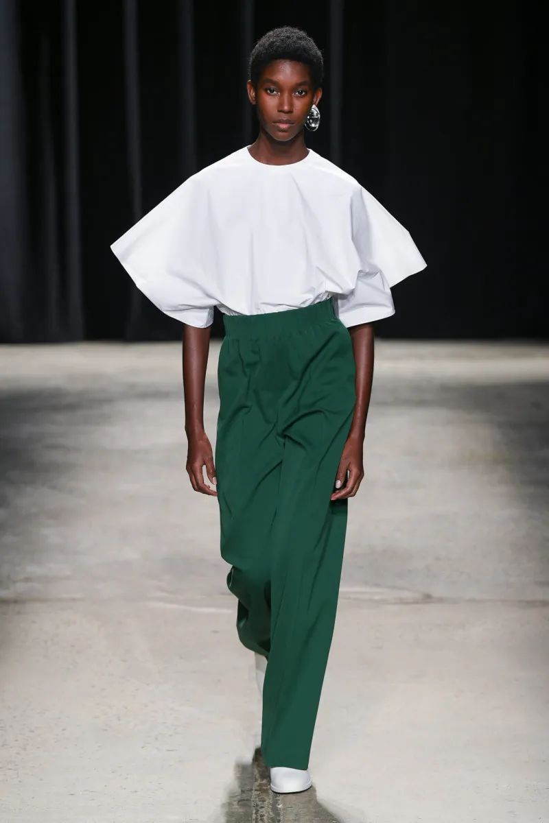 创始人兼创意总监 Helbers 的最新作品以并置为核心:精心悬挂的真丝平纹针织衬衫和四四方方的圈圈呢夹克之间,优雅的垂褶和利落的褶皱之间,不对称的束腰外衣和直腰带之间。他与两个(看似)相反的人坐在一起,利用他们各自的优势来创造一些新的和令人向往的东西。