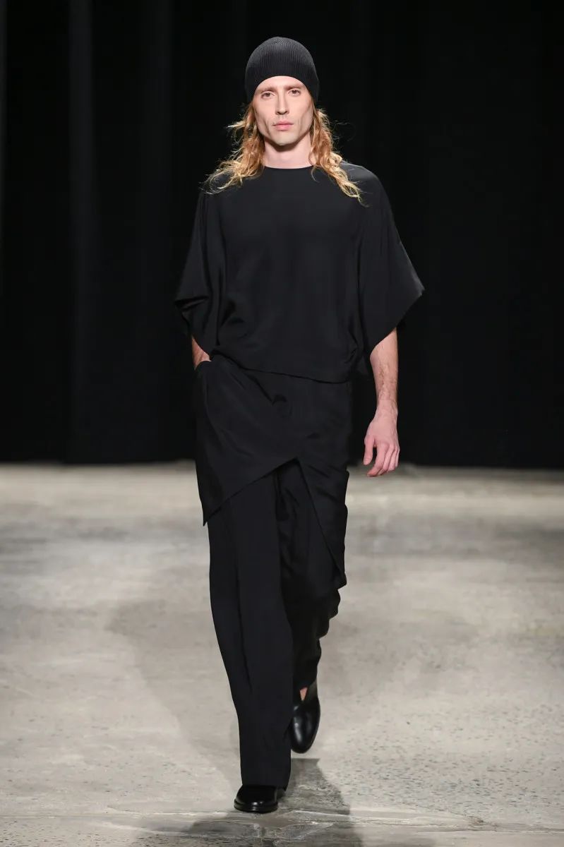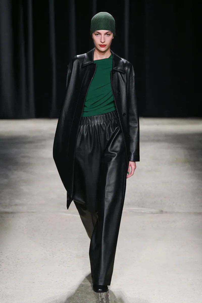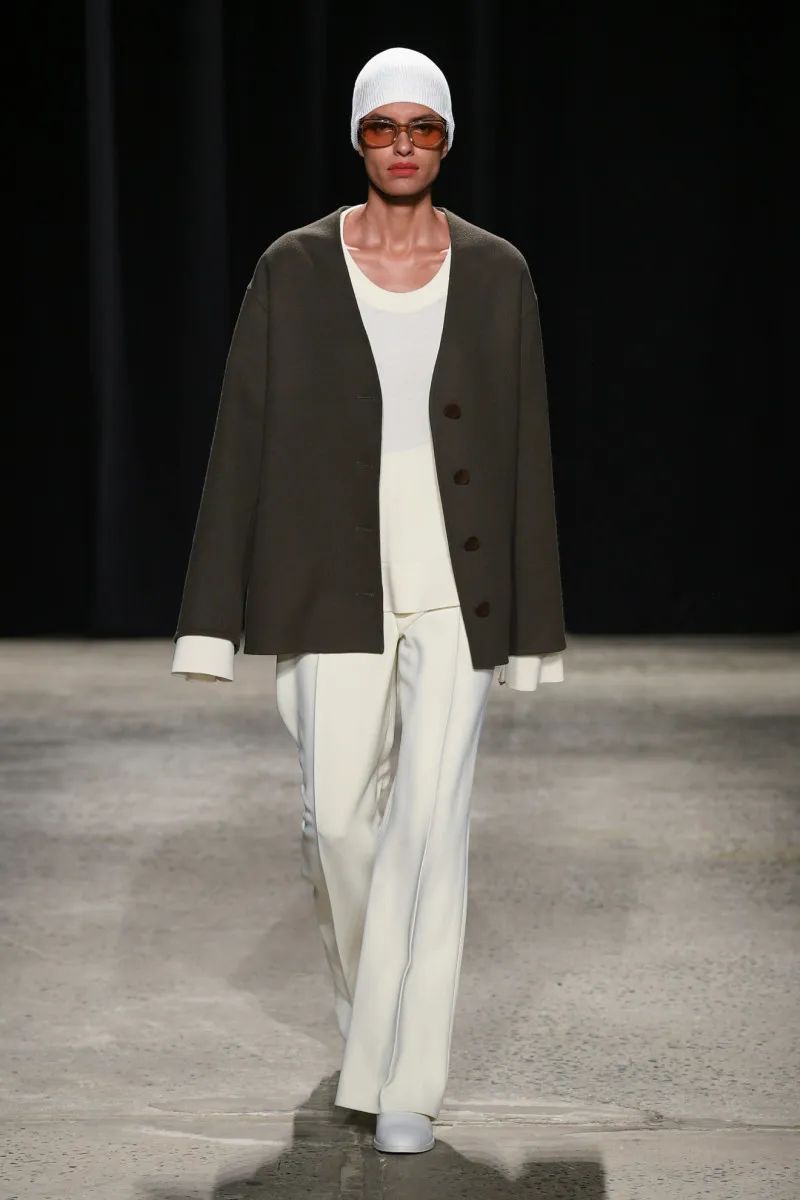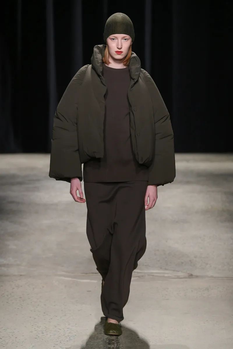 这位荷兰设计师——除了帮助The Row推出男装,还为Maison Martin Margiela工作,并与马克·雅可布一起为路易威登工作——在颜色方面很克制,专注于奶油色、靛蓝、红色、黑色、灰褐色和橄榄色的紧凑调色板。纺织品也是如此:2024年秋季系列使用府绸、煮熟的羊毛、回收尼龙和锤纹皮革。