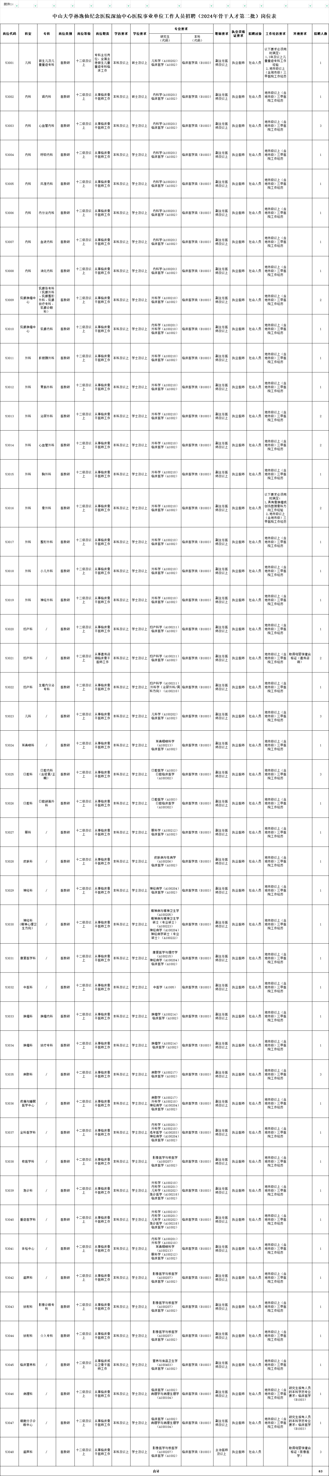详见《中山大学孙逸仙纪念医院深汕中心医院事业单位工作人员招聘(2024年骨干人才第二批)岗位表》(附件1)。