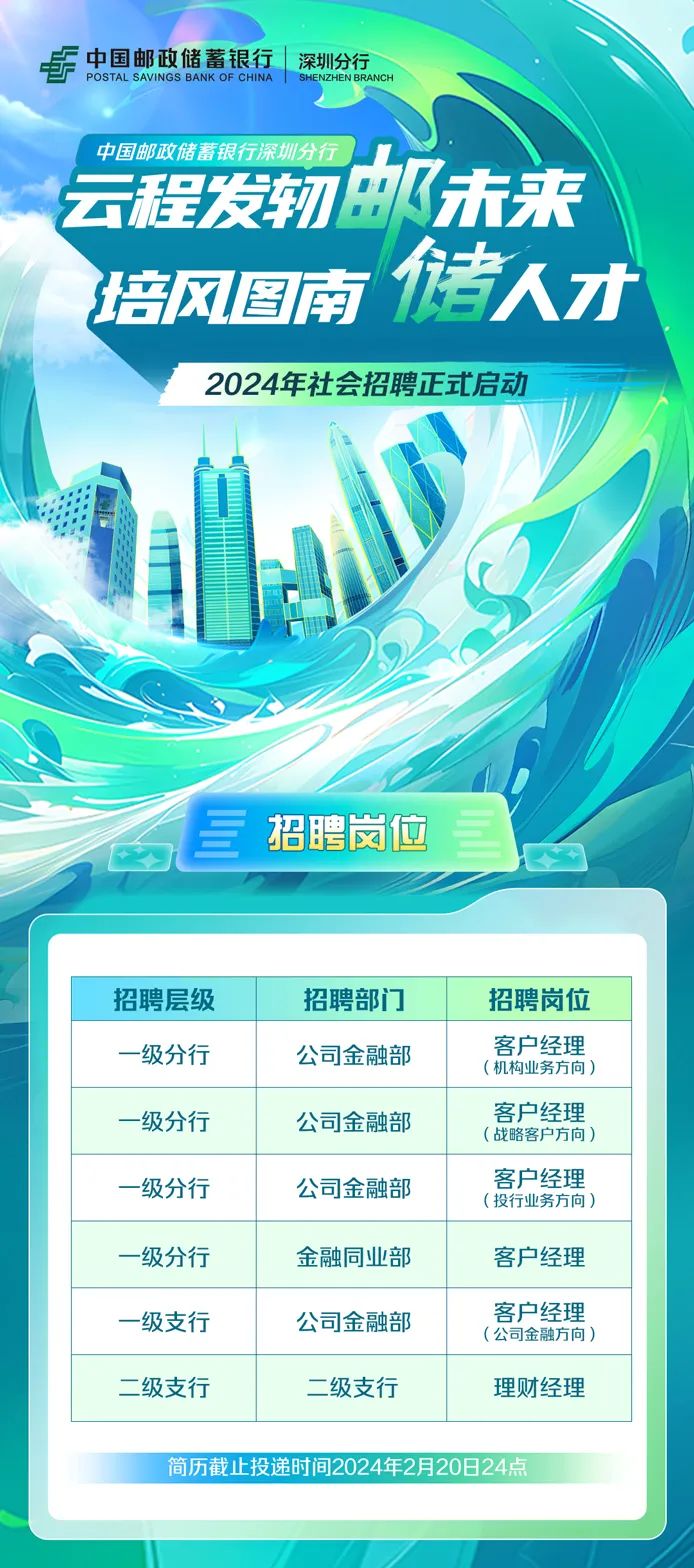 留学生海归招聘 | 中国邮政储蓄银行深圳分行2024年社会招聘