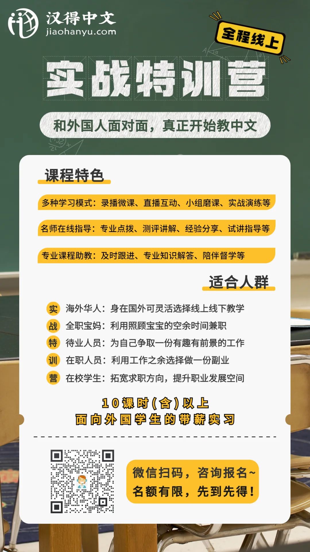 欢迎你报名国际中文教师实战特训营,