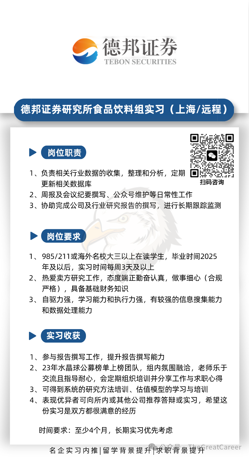 >德邦证券研究所食品饮料组实习(上海/远程)