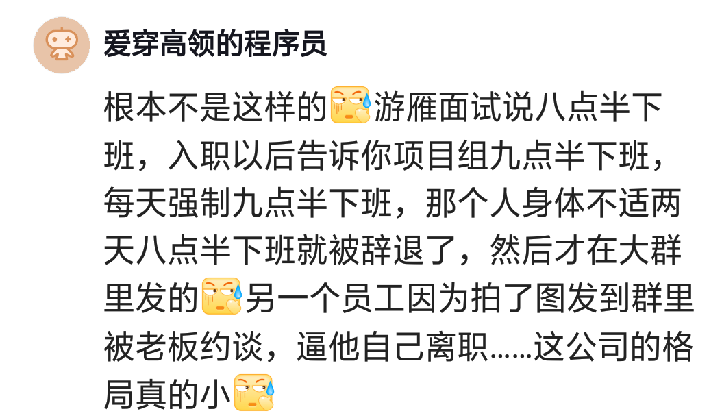 非常同意这位HR的观点,无论员工以什么原因离开或被迫离开,企业应该善待员工,好聚好散,不同的人,不同的对待方式。HR跟HR是不同的,在什么公司遇到什么人了,就决定在职场上会遭遇什么问题。