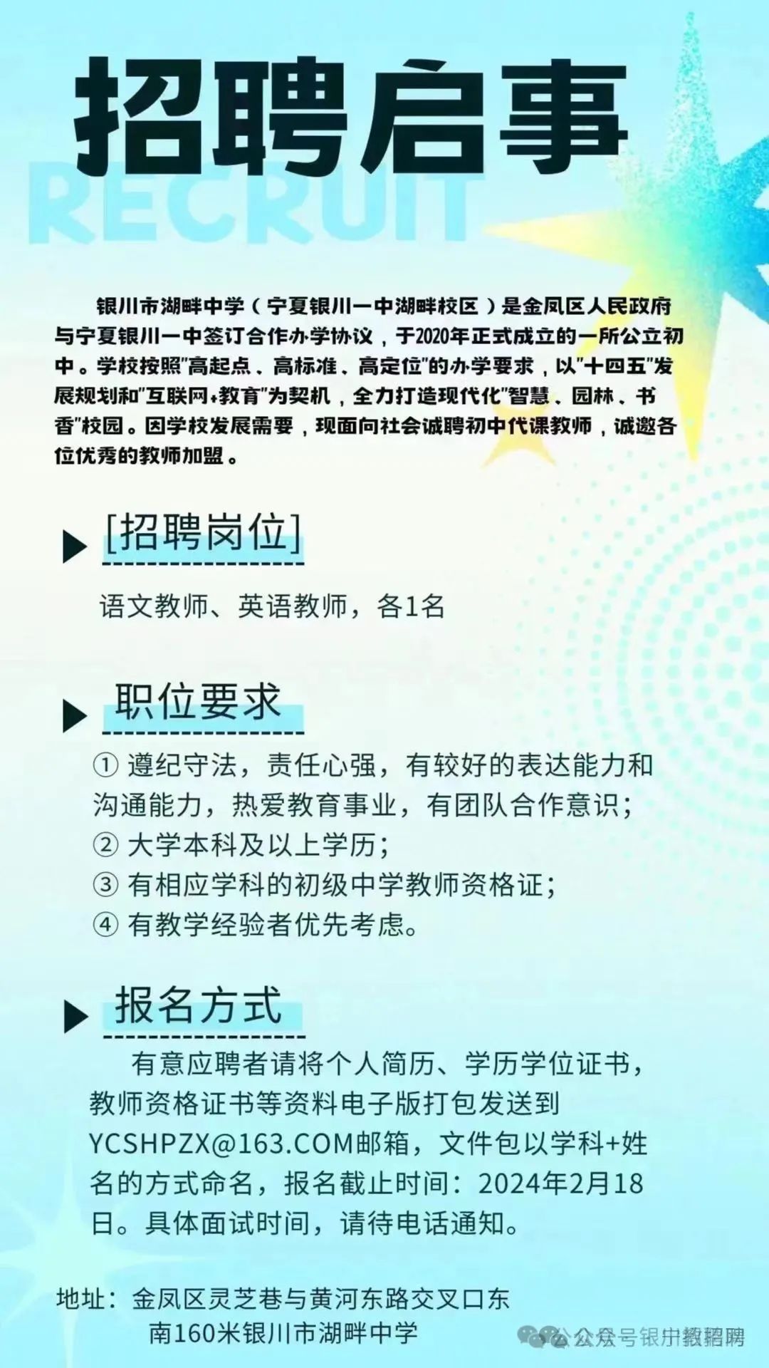 银川实验中学教师招聘