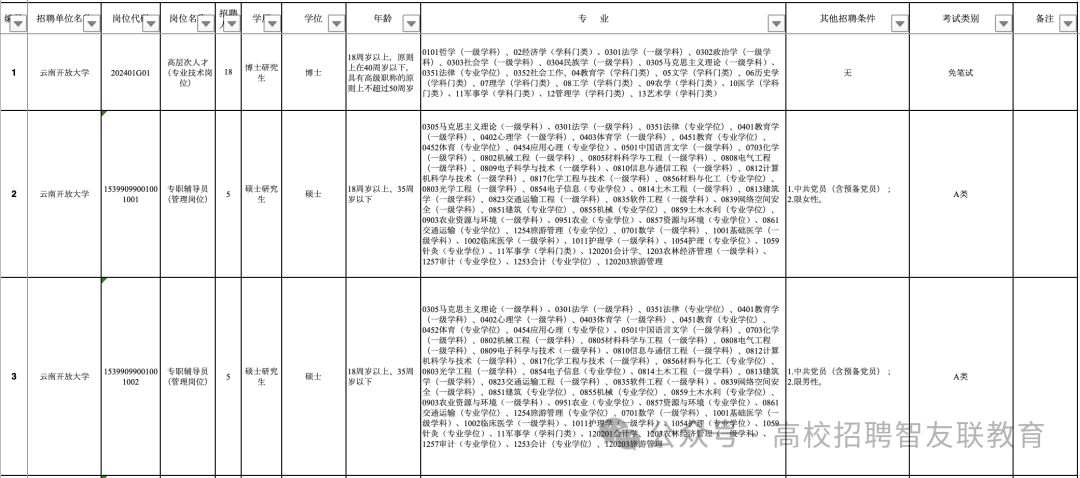 附件:1.2024年云南开放大学公开招聘人员计划表;