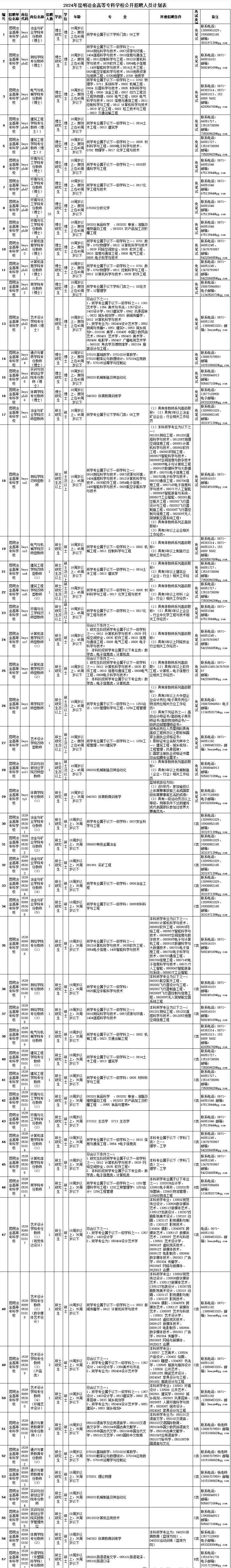 昆明冶金高等专科学校共公开招聘工作人员83名。具体招聘岗位及招聘条件,详见《2024年昆明冶金高等专科学校公开招聘人员计划表》(附件1)。