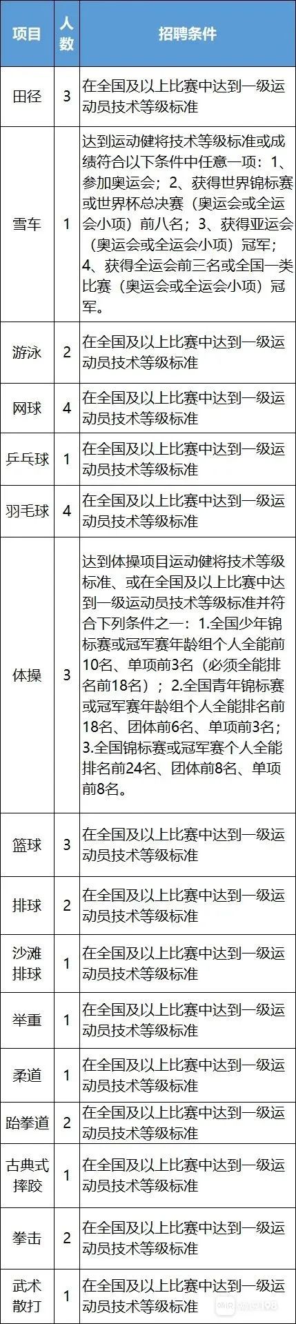 应聘人员应完整填写报名表,并附身份证、相关赛事获奖证书、运动等级(成绩)证明、试训证明等复印件1套,以及近期2寸免冠彩色照片1张,一并送达或邮寄至中心办公室。报名材料一律不退还。