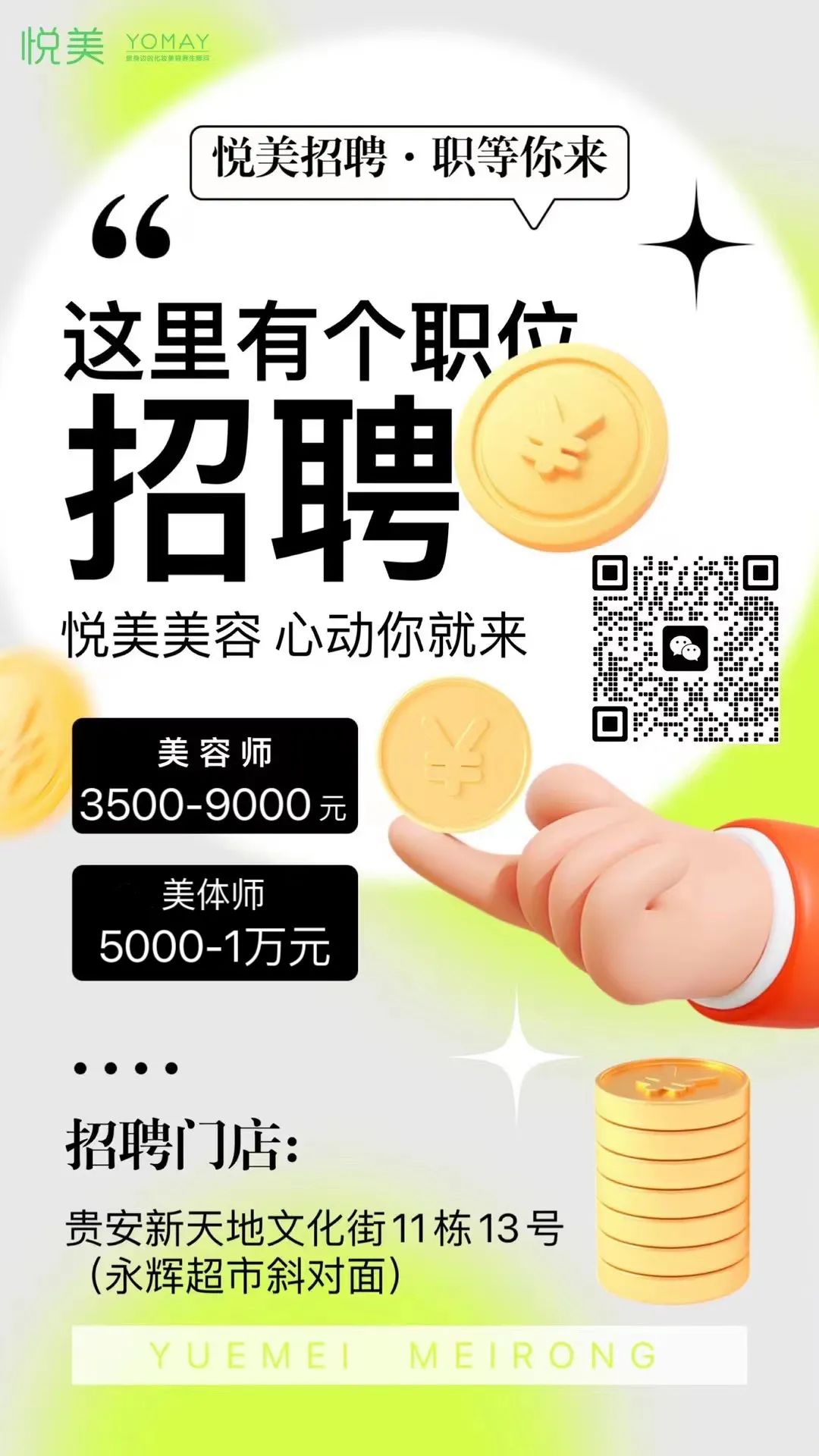悦美美容招聘❤️因业务需求量大,现高薪招聘!