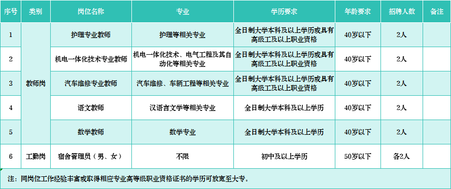 ②具有应聘岗位所需的专业知识能力,具备相关专业中职教师资格证书(文化课具备相应专业高中教师资格证);