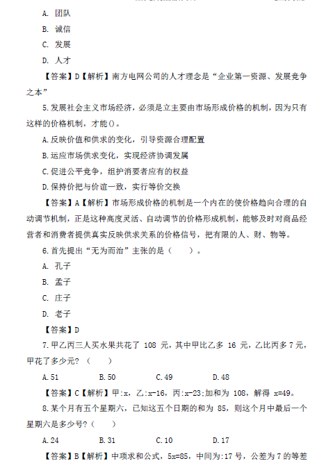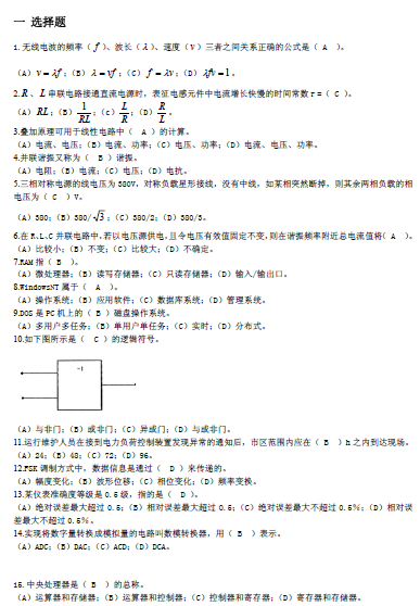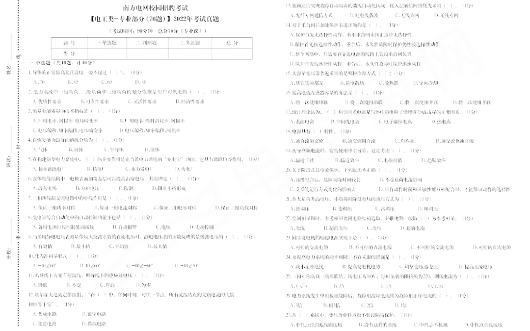 南方电网云南电网公司招聘笔试机考真题