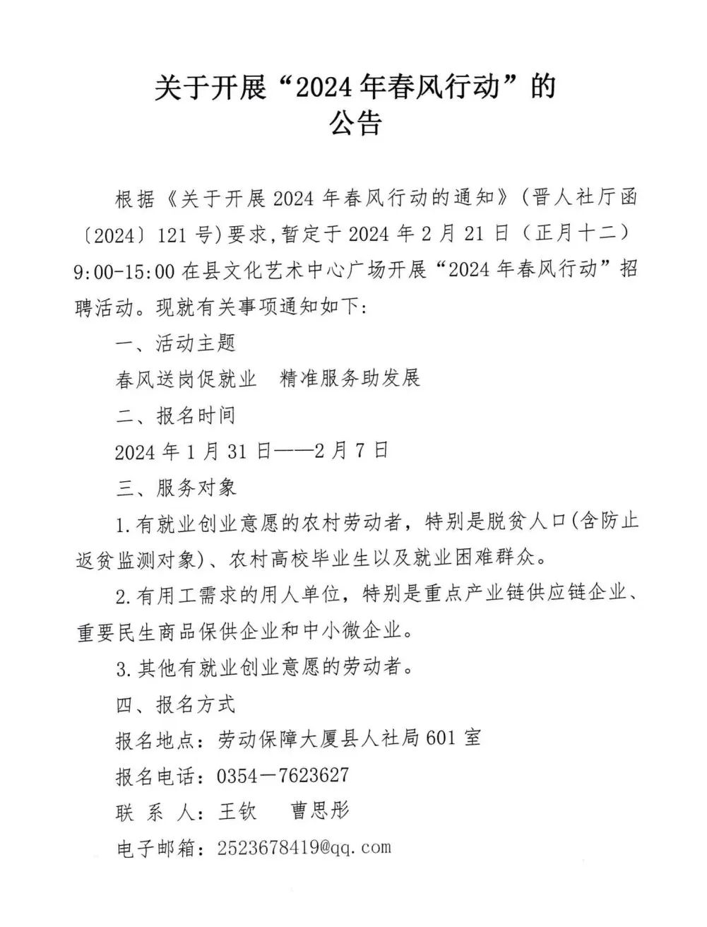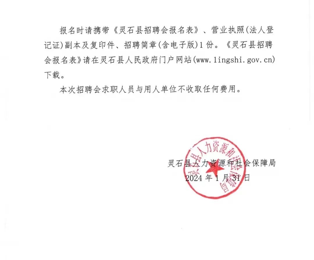 >招聘预告|灵石县关于举办“2024年春风行动”的公告