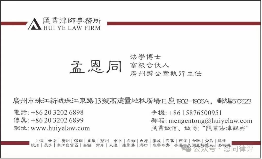 邮箱:mengentong@huiyelaw.com,请提供过往工作业绩材料,合则约见。